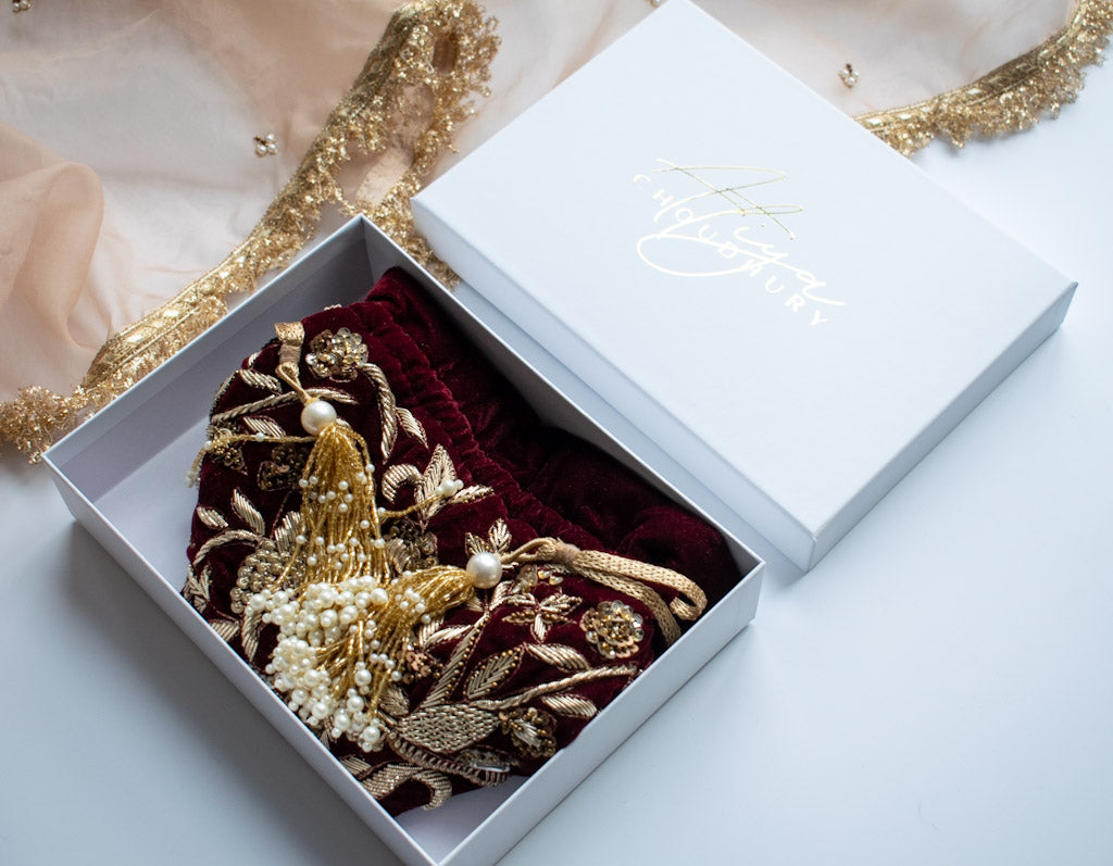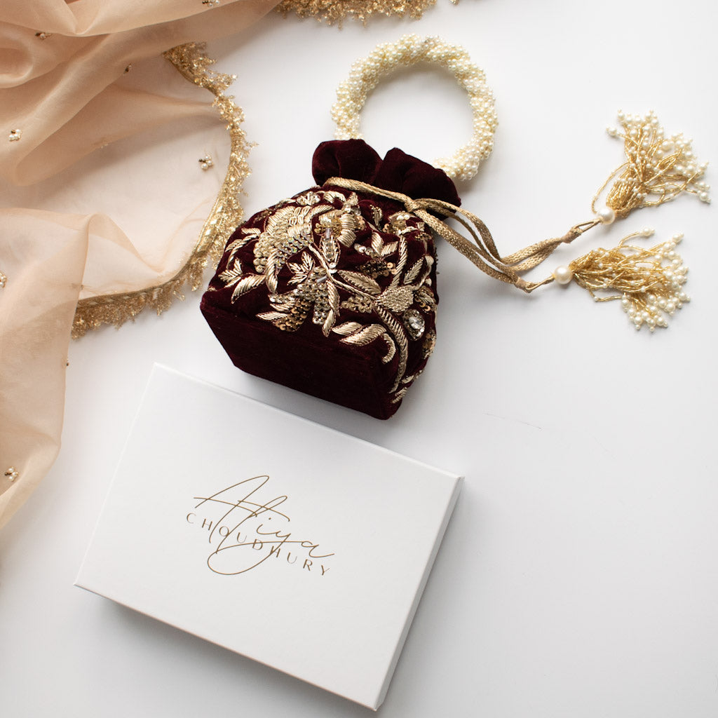 PRE-ORDER - Alisha Potli Bag (Deep Maroon Velvet)