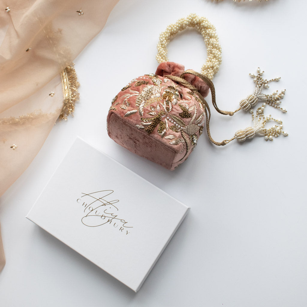 PRE-ORDER - Alisha Potli Bag (Dusky Pink Velvet)