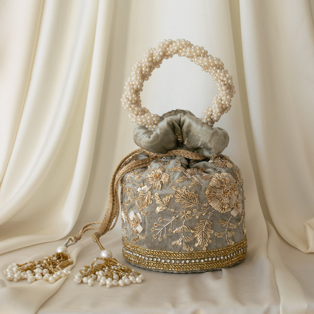 PRE-ORDER - Anaya Potli Bag (Sage Green Velvet)