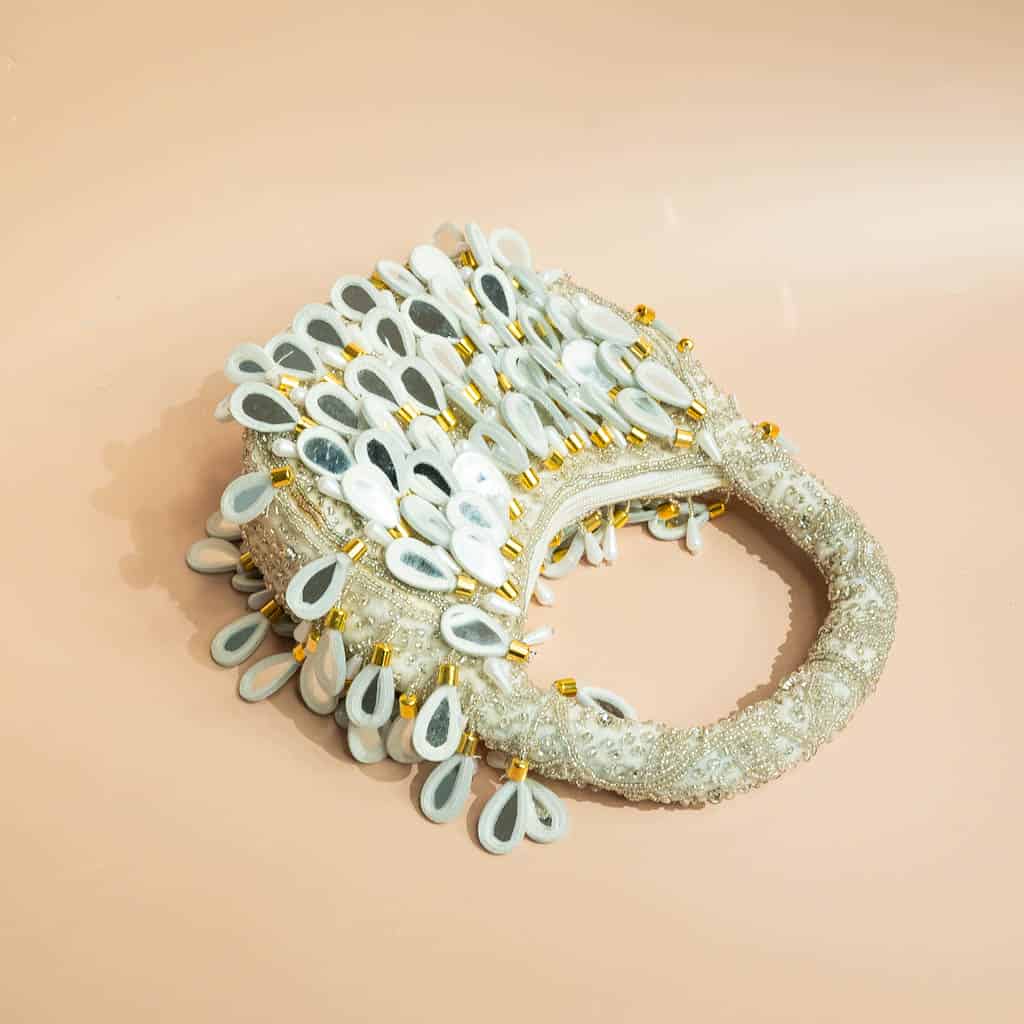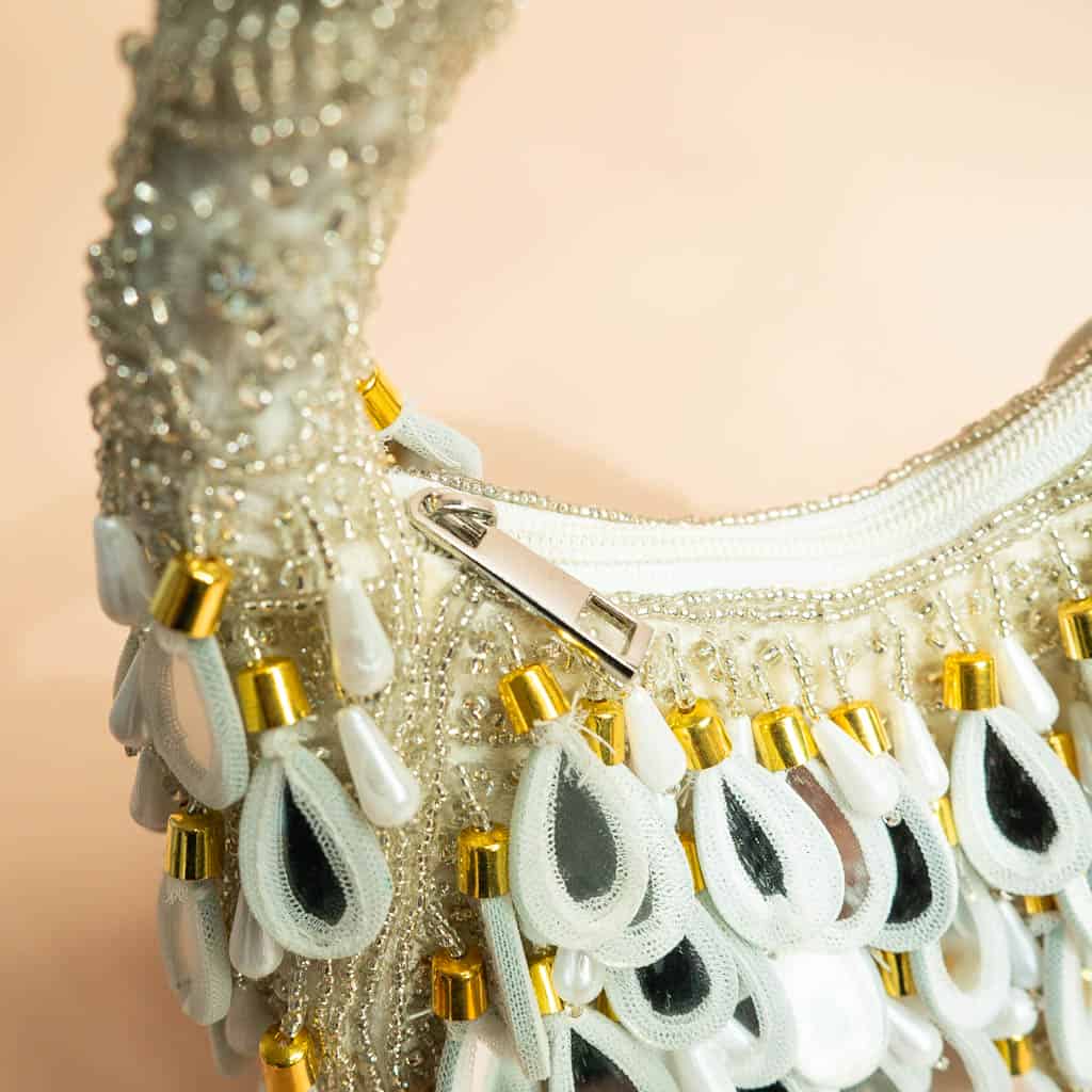 Introducing the Rihana Handbag, a dazzling accessory that will turn heads! This fully beaded masterpiece features intricate embroidery and sparkling mirror tassels. Perfect for adding a touch of elegance and vibrancy to any outfit. Elevate your style with this one-of-a-kind, statement-making handbag that's both fashionable and functional with a zip closure.