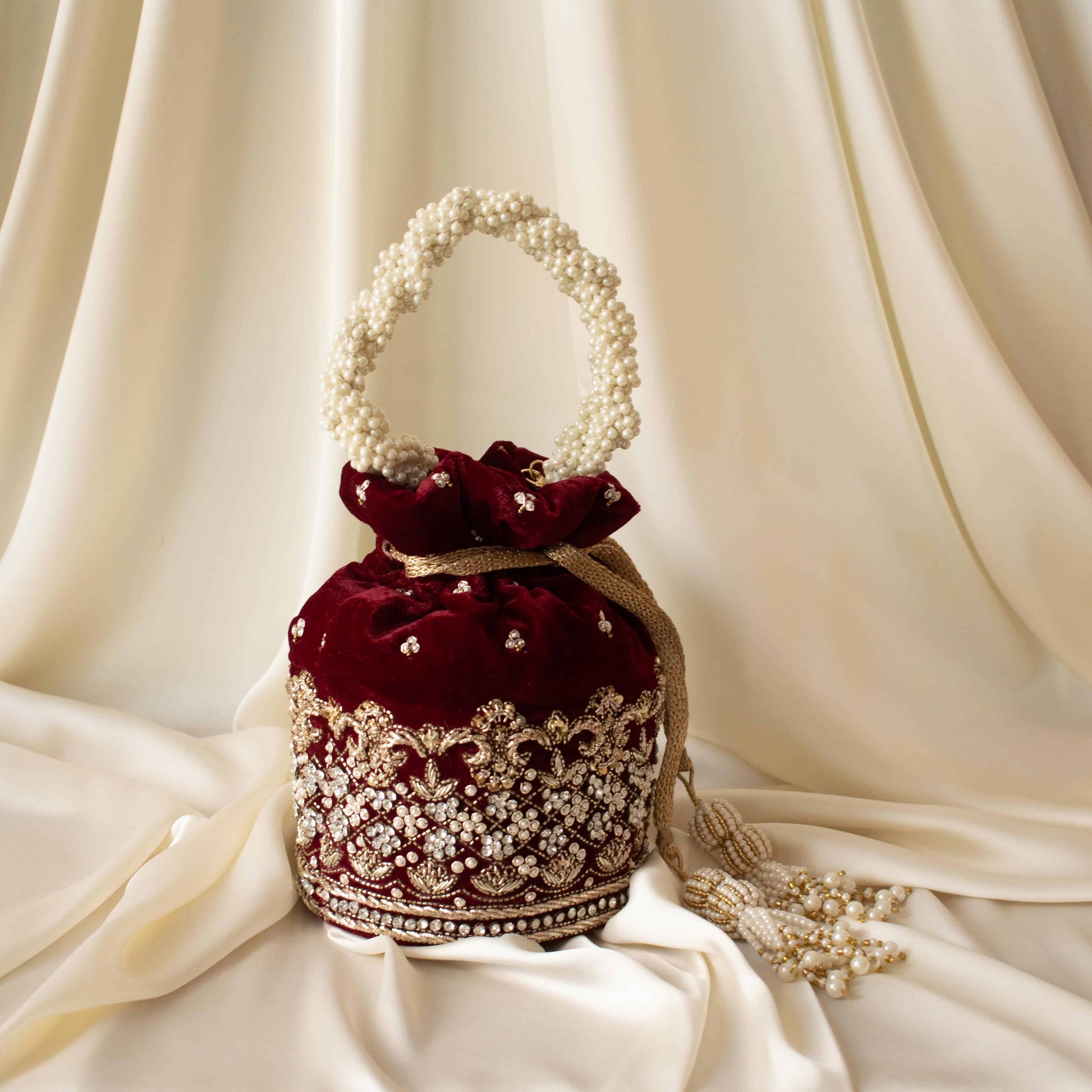 PRE-ORDER - Ruby Potli Bag (Maroon Velvet)