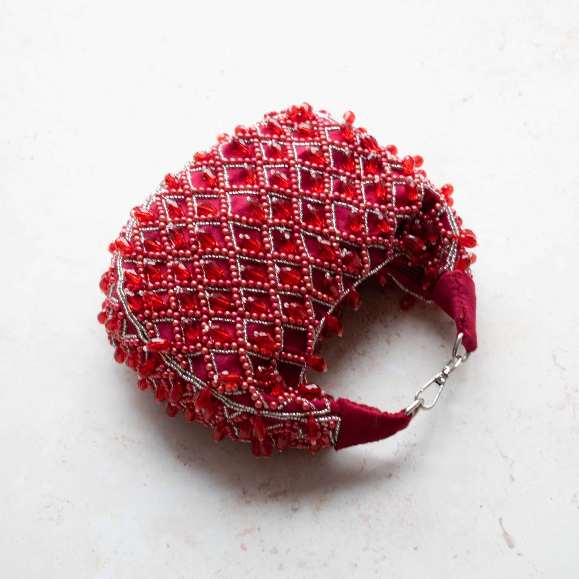 Elevate your style with the Tala Handbag in deep red suede. This chic mini tote transforms from clutch to shoulder bag, perfect for any occasion. Adorned with elegant embellishments, it boasts a soft suede texture and secure zip closure. Versatile and sophisticated, this handbag adds a touch of elegance to any outfit.