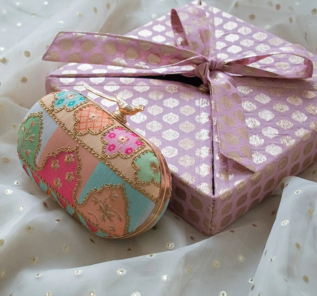 The structured silhouette is finished with our signature bird clasp, adding a touch of timeless elegance to every outfit. Whether you’re attending a wedding, engagement, mehndi, or evening event, the Virala Clutch is the perfect blend of sophistication and charm.